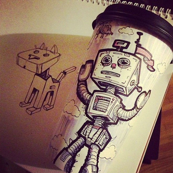 Từ đó, anh thường xuyên luyện tập và vẽ hình minh hoạ trên từng cốc cà phê của quán này. Dần dần việc sáng tạo trở thành thói quen không thể thiếu hàng ngày của anh.